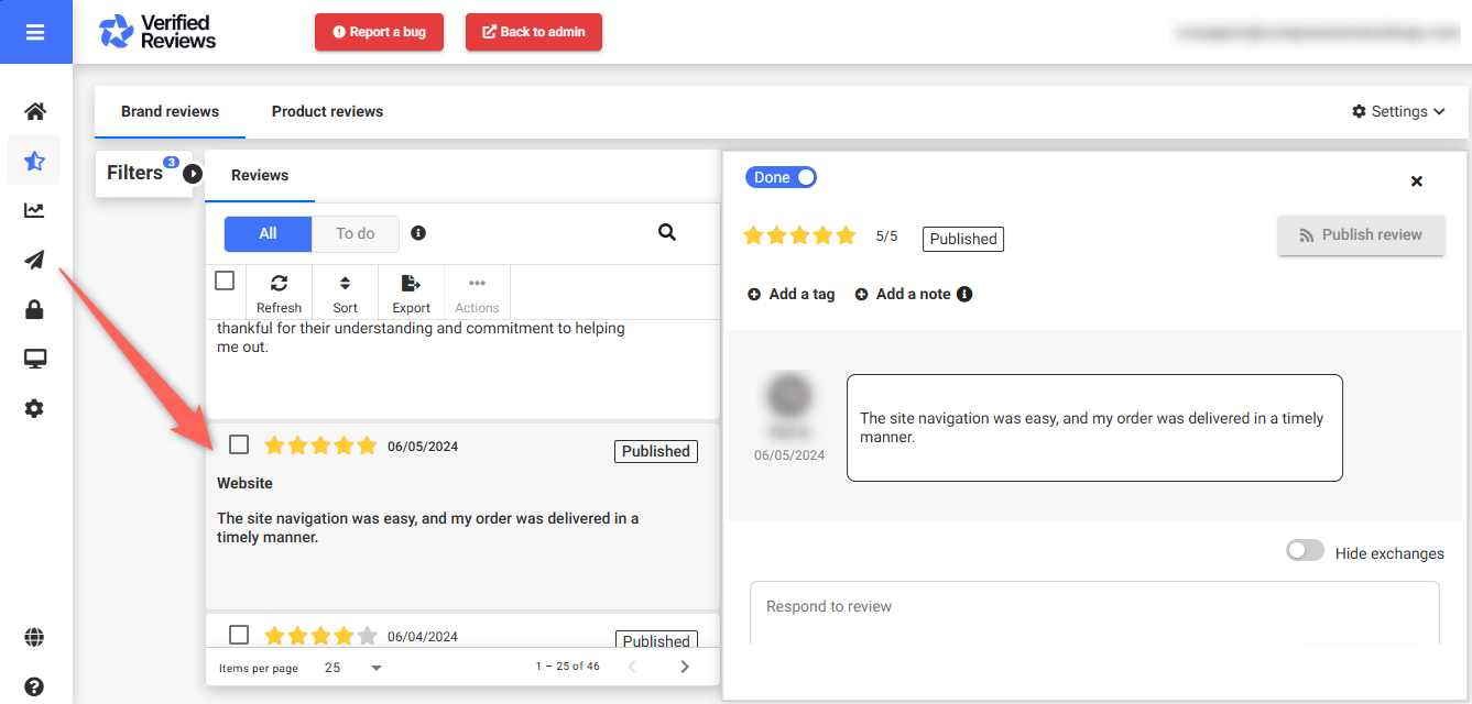 - Click on the relevant review: