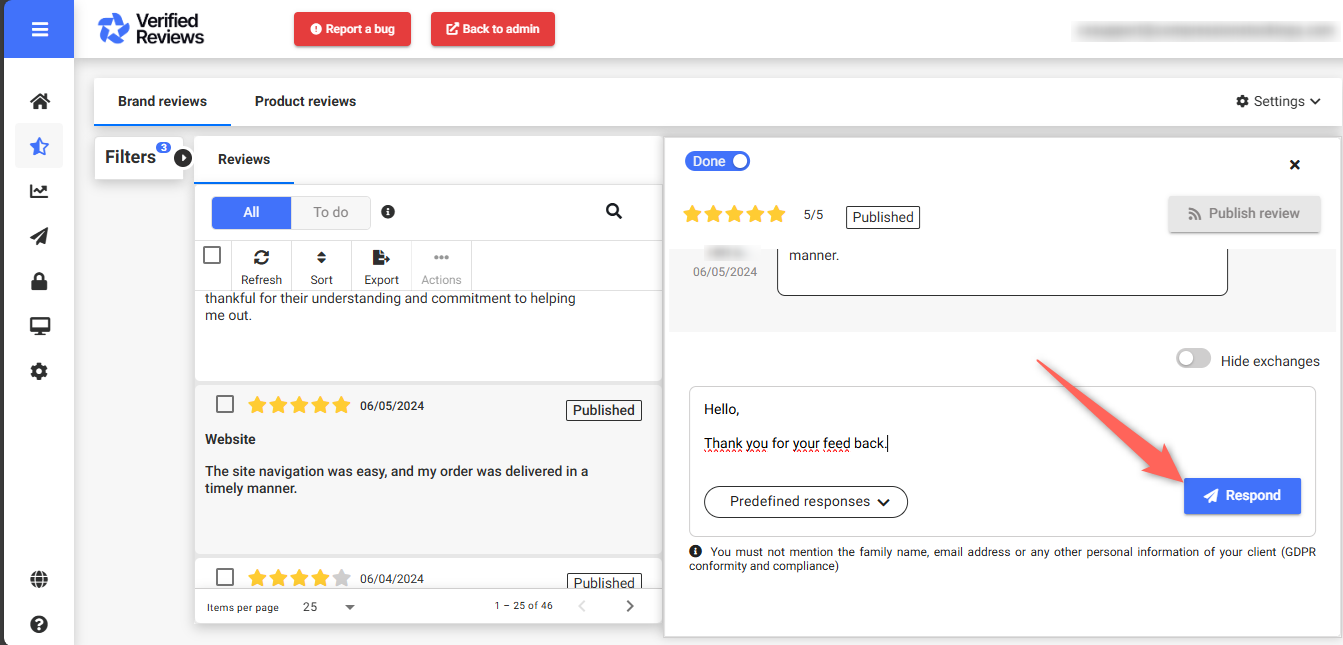 - Log in to your Avis Vérifiés customer space, then go to the "Review Processing" tab.
