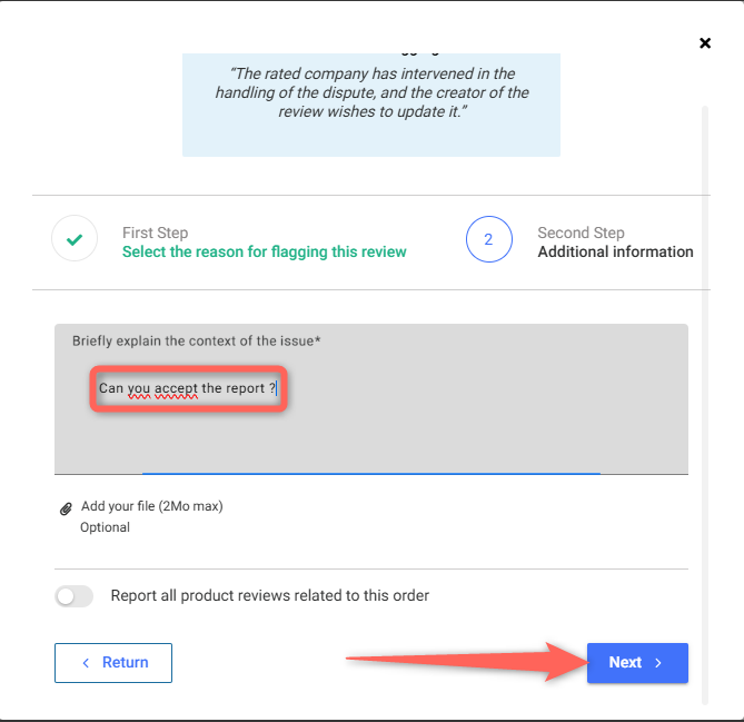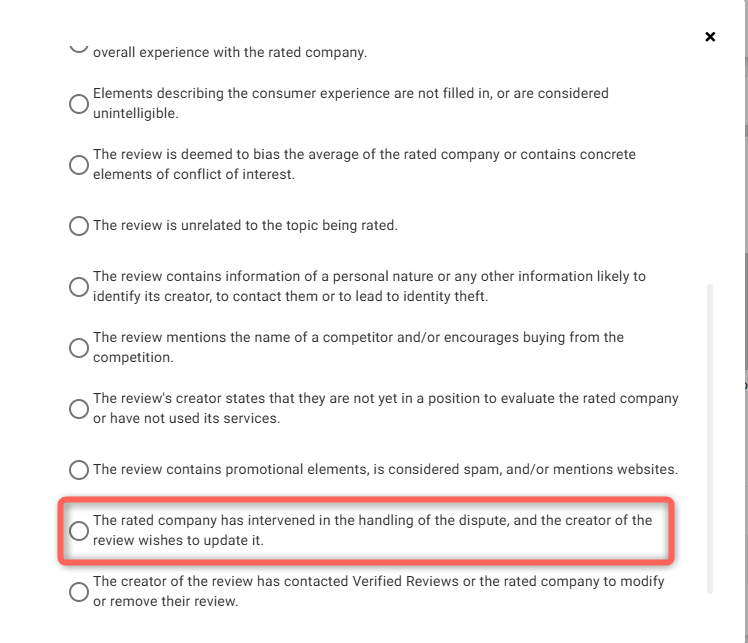 - Report the review by selecting the reason "The reviewed company intervened in the dispute resolution, and the review author wishes to update it"