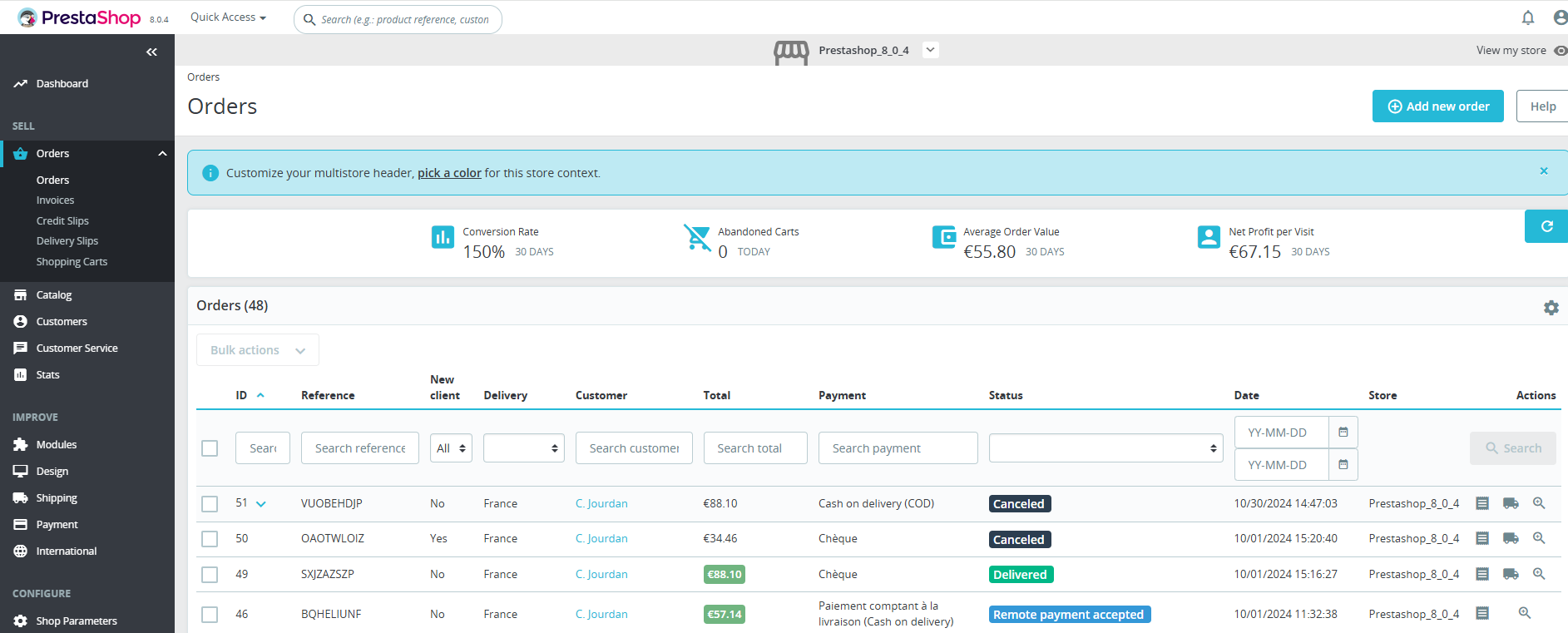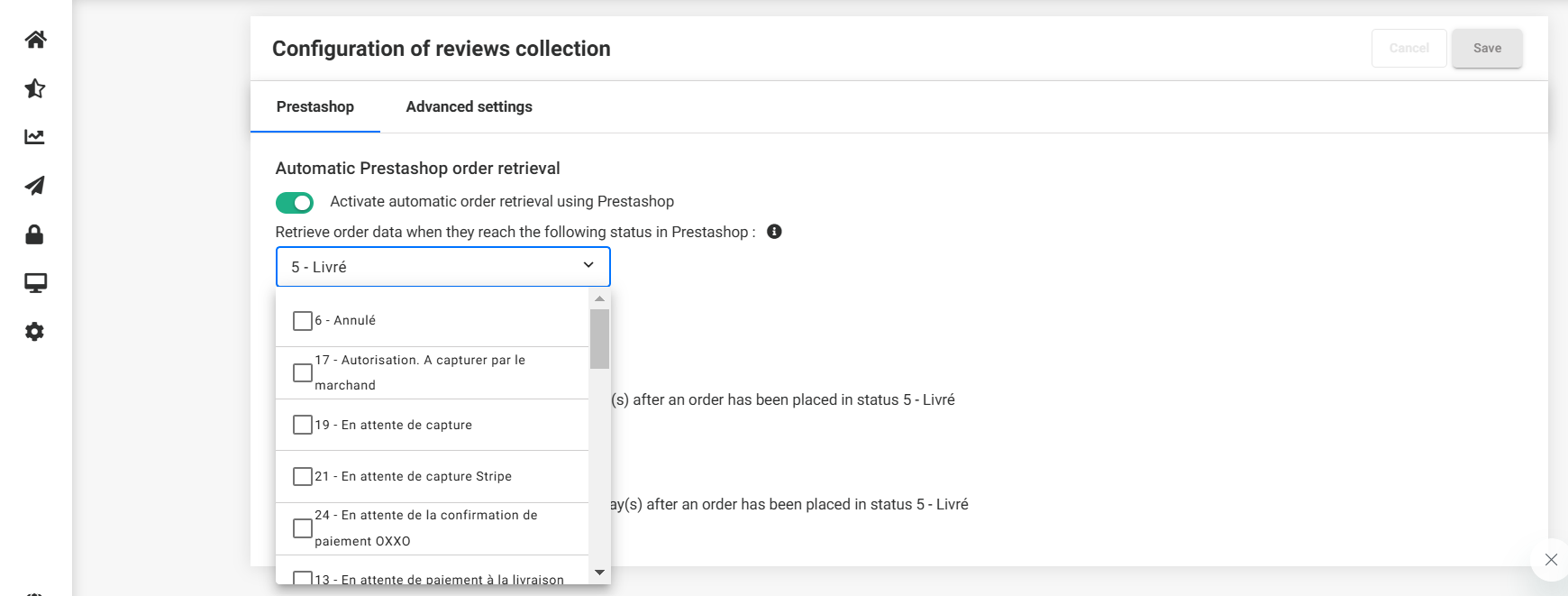 If needed, update the list. Note that a one-hour delay may be required for the update to take effect. - From your Prestashop account, ensure that your orders are in the selected statuses: