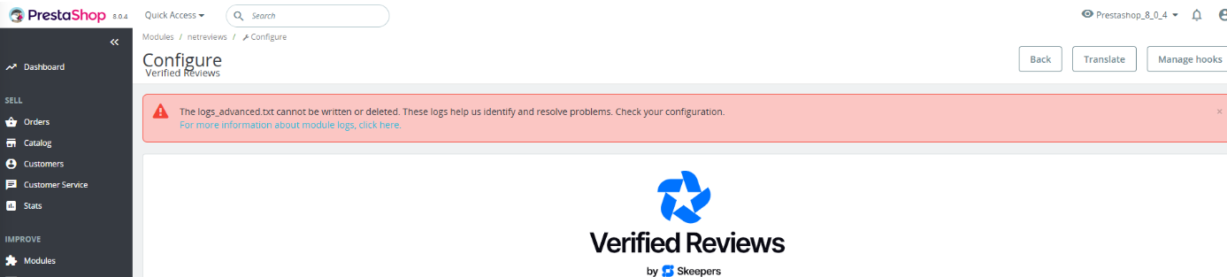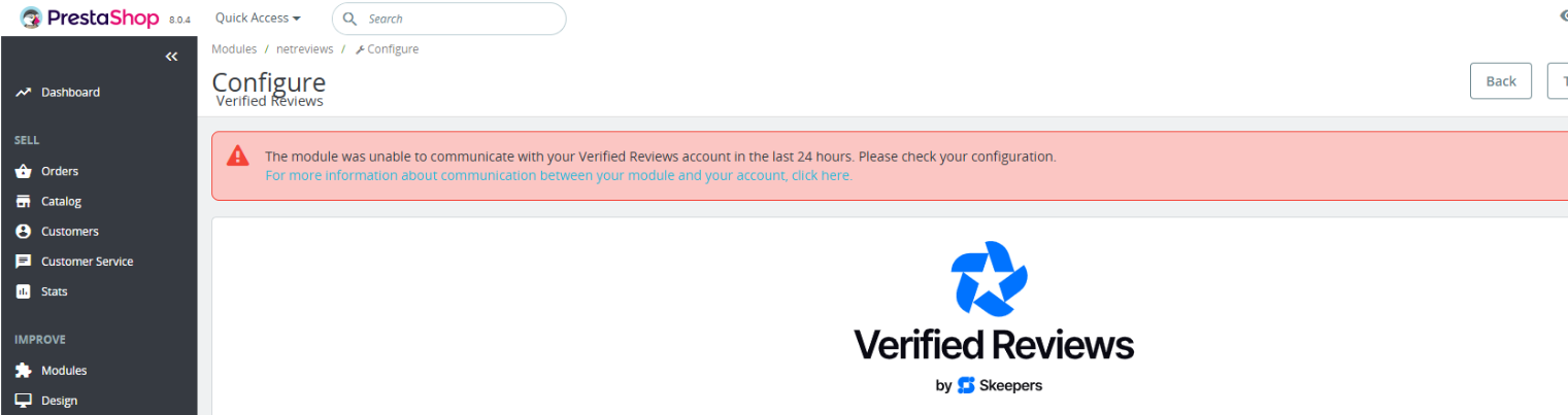 3. Check that the credentials entered in the Configuration section of Prestashop are correct and match those in the My Connector page of your Verified Reviews account.