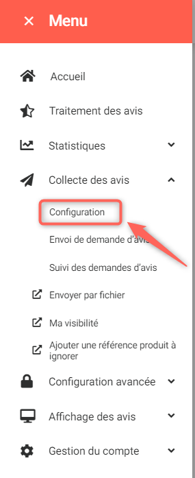 Log in to your Rating & Reviews account and go to the Collect Reviews > Configuration menu.