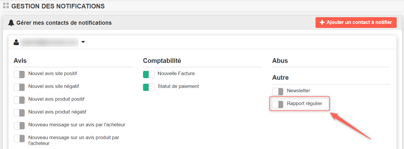 Selecciona la dirección de correo electrónico del usuario afectado y activa la opción Informe Regular, en la pestaña Otros.