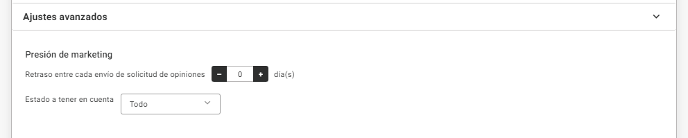 - Presión de marketing: Defina la frecuencia con la que se debe enviar una nueva solicitud de reseña a un cliente para evitar el exceso de solicitudes, especialmente para los clientes habituales.