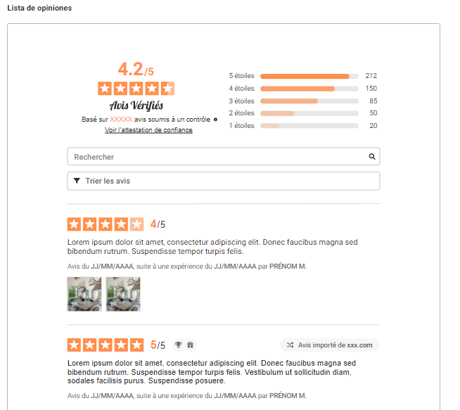 Como recordatorio, el widget de marca muestra la valoración media, sobre 5, de las opiniones recopiladas en los últimos 12 meses. El widget sólo será visible una vez que haya recopilado 3 opiniones.