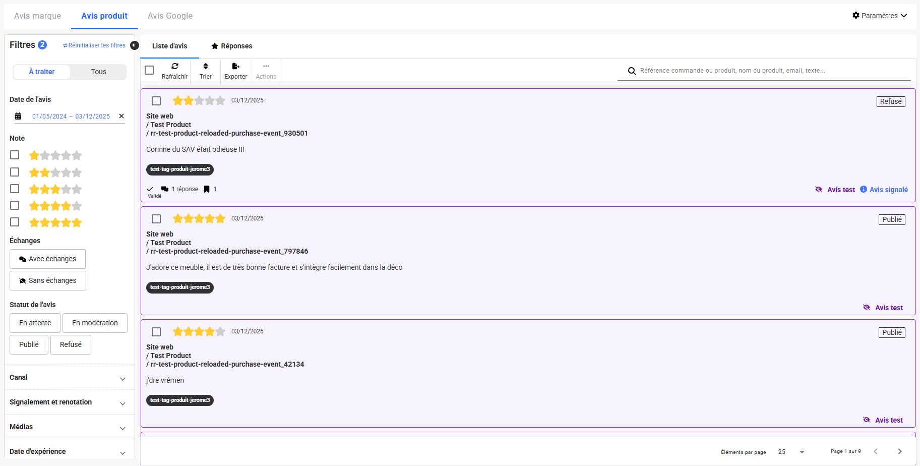 Une nouvelle interface de traitement des avis est désormais disponible. Les filtres existants, toujours accessibles au même endroit, ont été repensés afin de vous aider à mieux prioriser, ne rien oublier et traiter vos avis plus efficacement, même avec un volume important.