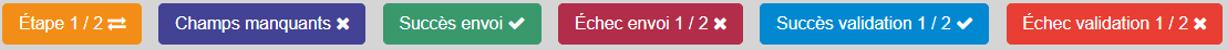 - Bouton « Étape » : fait évoluer l’état du formulaire. Par exemple, pour une question, la première étape correspond au titre et au contenu, tandis que la seconde concerne les informations du client.