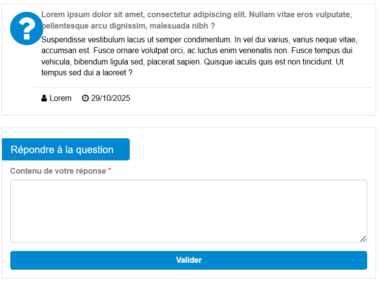 Tout au long du processus de dépôt de questions ou réponses, les internautes sont amenés à compléter des formulaires spécifiques ou recevoir différents emails de notifications.