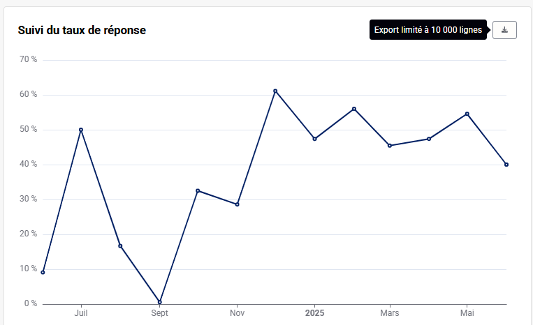 Alcuni indicatori di performance disponibili nei tuoi dashboard (valutazione media, andamento del punteggio, ecc.) possono essere esportati in formato CSV.