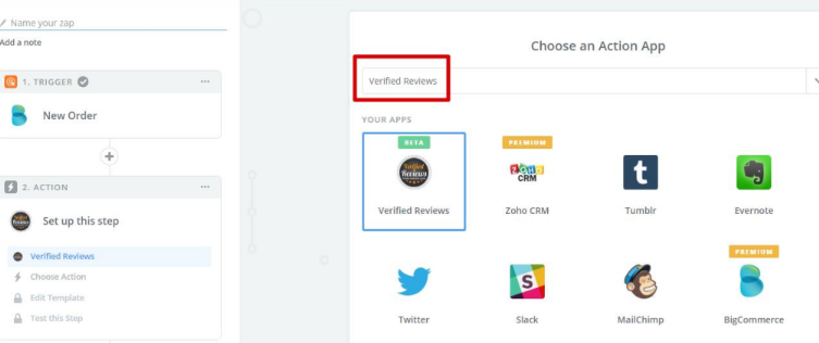 Accedere all'app Zapier da Recensioni Verificate