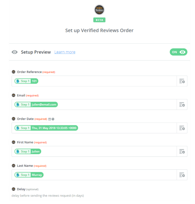Se desideri inviare i tuoi ordini e-commerce a Recensioni Verificate e attualmente non disponi di un modo per farlo, l’applicazione Recensioni Verificate per Zapier può rappresentare una soluzione adatta.
